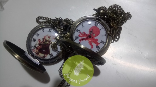 Two more pocket watch pendants arrived yesterday, so far I have 9 from the same seller on Shopee. The items are always bubble wrapped and although I should have stopped at the first order (totalling 5), I found more designs I couldn’t resist like these Alice in Wonderland and octopus ones.