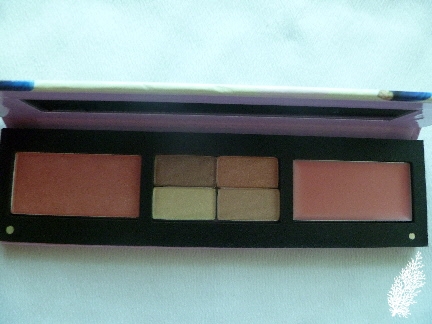 The Face Palette consists of Cheek Powder (0.48g), Eye Shadow (4×0.54g) & Lip Gloss (0.22g). It’s really a mini palette, good for taking along on short trips as it weighs virtually nothing.