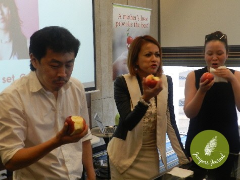Before the demonstration began, Sazzy competed against 2 media persons in the apple eating challenge to see who could eat the most apple within 30 seconds. No surprise the only male contestant won.
