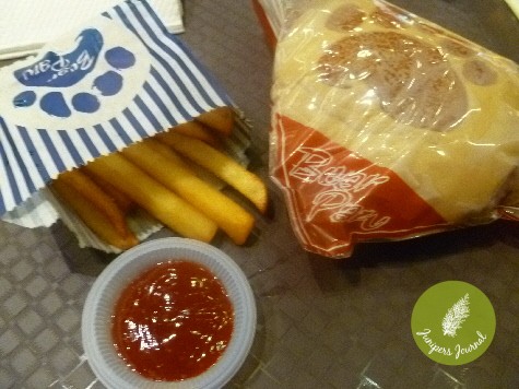 It’s a reasonably good sized bun, filling enough for lunch. Every bun has a bear paw print on top. The fries were done very well, nice and crisp.